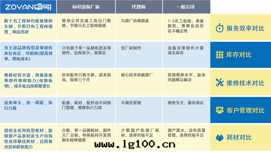 卓研與(yǔ)标(biāo)識設備廠(chǎng)家(jiā)、代(dài)理(lǐ)商、一(yī)般公(gōng)司的(de)優势对(duì)比